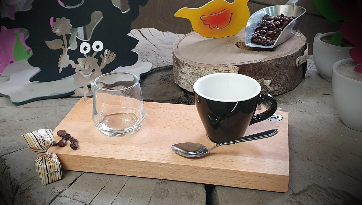 Es ist eine Zusammenarbeit auf Augenhöhe: Wir lieben seine Mini-Monster und Patrick liebt unsere “Espressobretter”. Kunst und Handwerk aus Franken vereint als wunderschönes Espresso- Kaffee- und Cappuccino-Accessoire.